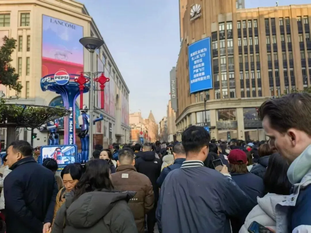 随着春节的来临,南京路和外滩的人流量就是另一番风景啦。用人山人海来形容一点都不为过。