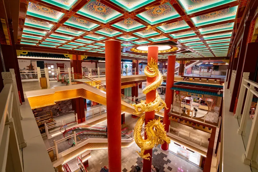 商场通过“金陵帝王州演艺空间”、“金陵宫演艺空间”、“魁星阁科举空间”、“屋顶花园文娱空间”,串起“大明考生泛舟赴举、殿试折桂锦绣金陵、魁阁祈梦金榜题名、金陵文娱入画江南”的文化故事线,让大家亲身感受大明王朝的繁华与烟火气。