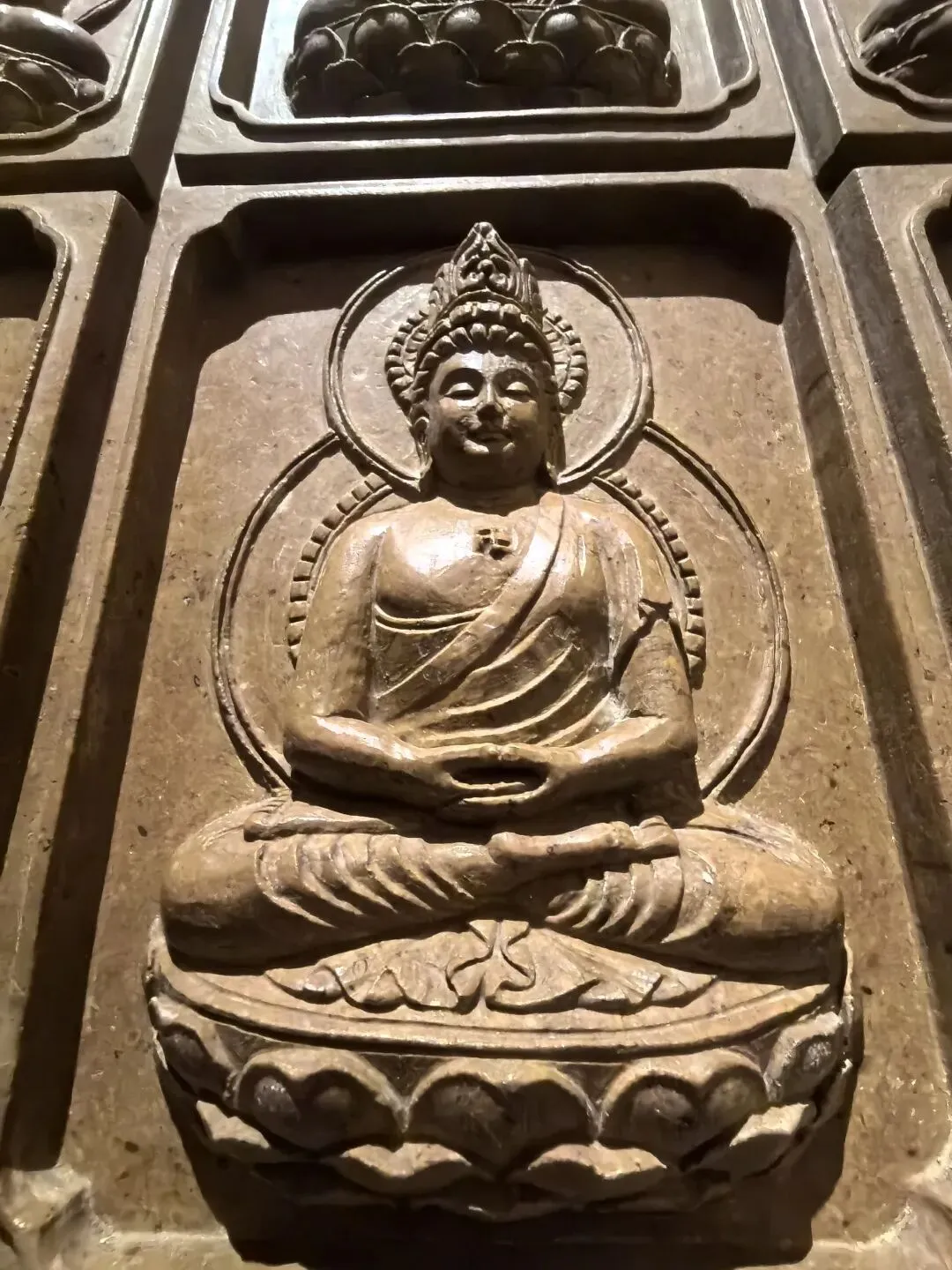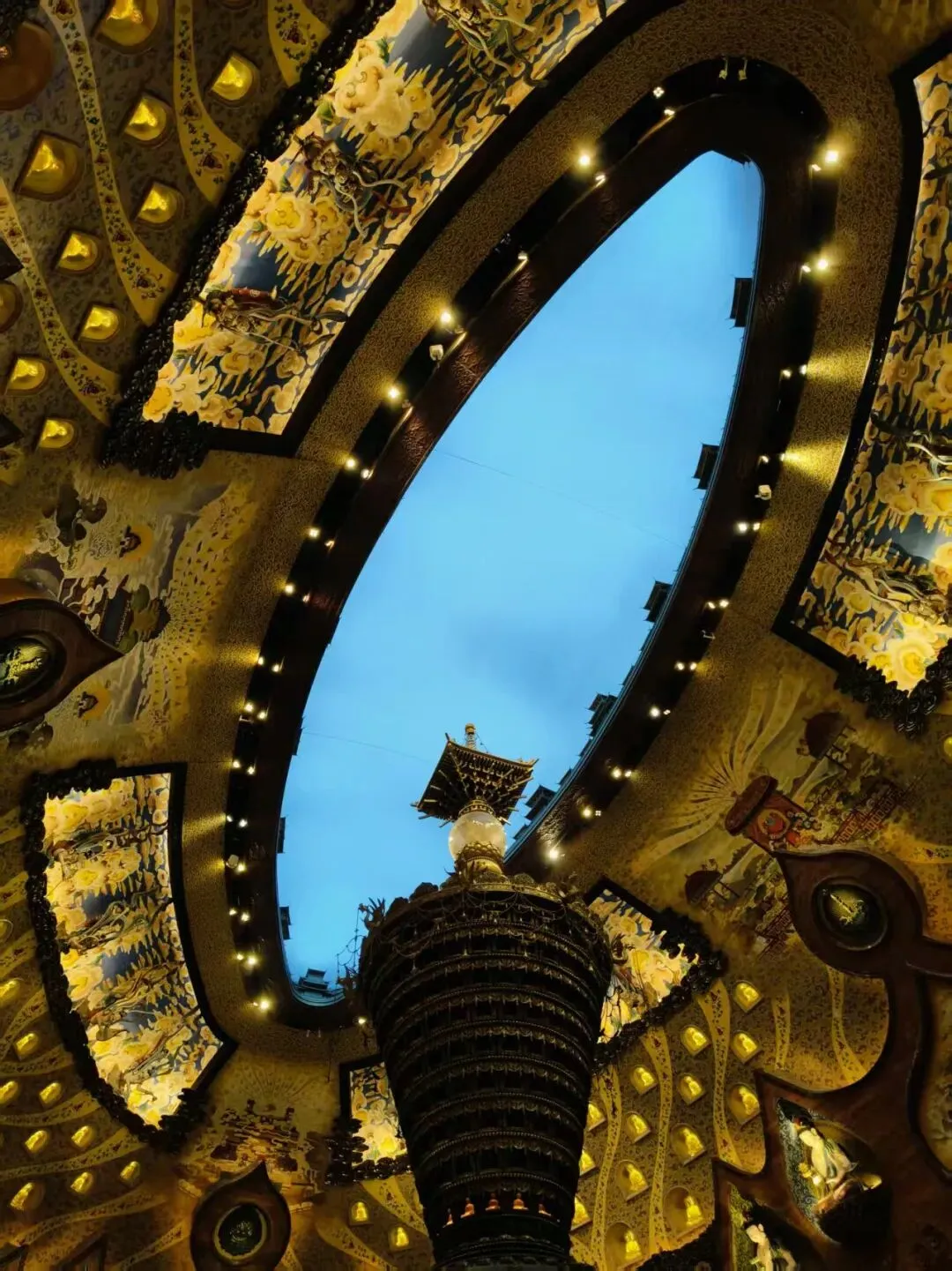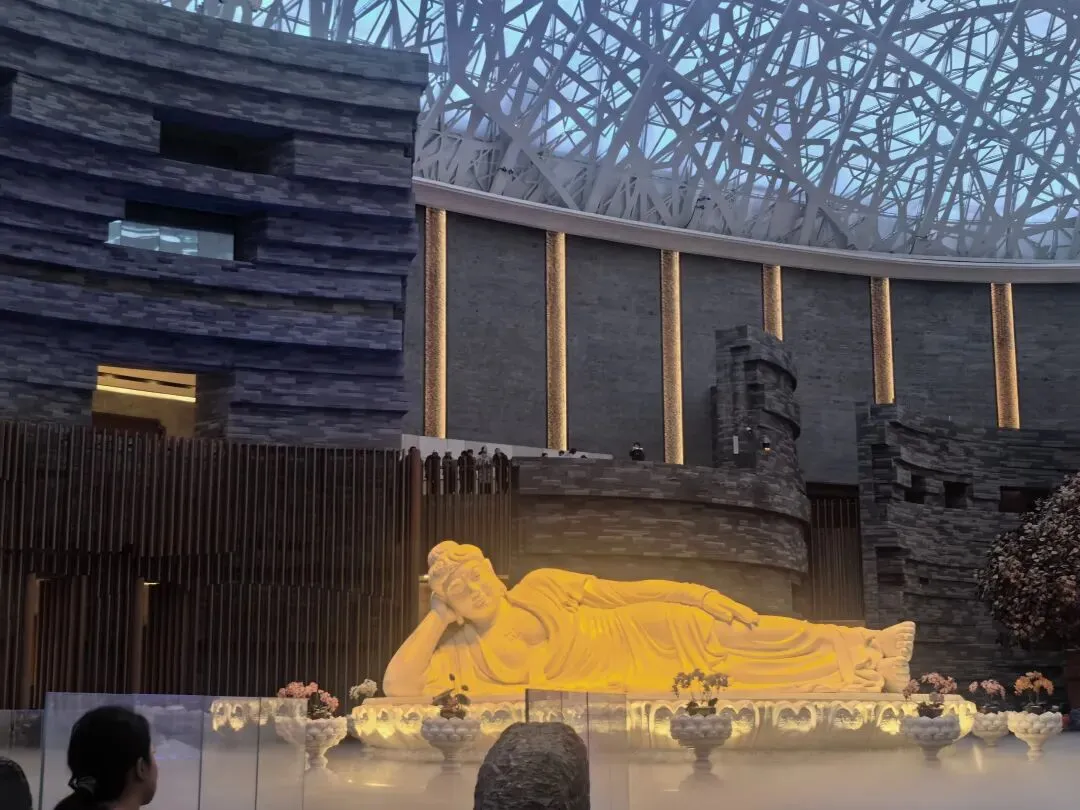 卧佛缓缓旋转,卧看众生,看完卧佛,准备下地宫,直接下地下五层,然后一层层往上转,直到一层,看着错综的扶梯,像是时空穿梭机一般神秘又虚幻。