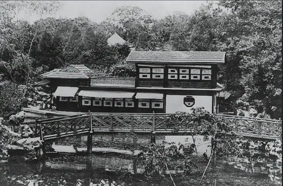 申园于1890年重建后改称“愚园”,当年门口马车林立,繁华可见一斑。