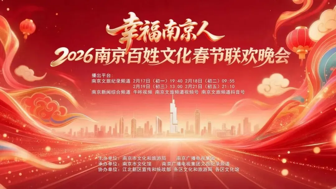 2026年农历新春之际,一台属于南京人自己的文化盛宴——“2026南京百姓文化春节联欢晚会”于2026年1月30日下午,在南京电视台演播大厅圆满完成录制。整场晚会以“幸福南京人”为主线,通过三大篇章层层推进,不仅营造出浓厚的节日氛围,更集中展现了南京群众文化的丰硕成果和澎湃活力,融汇歌舞、戏曲、曲艺、杂技等多种艺术形式,既有《桨声灯影夜秦淮》《醉秦淮》等浸润金陵韵味的节目,也有《欢乐中国年·幸福南京城》《想去看看南京》等洋溢时代气息的演绎。