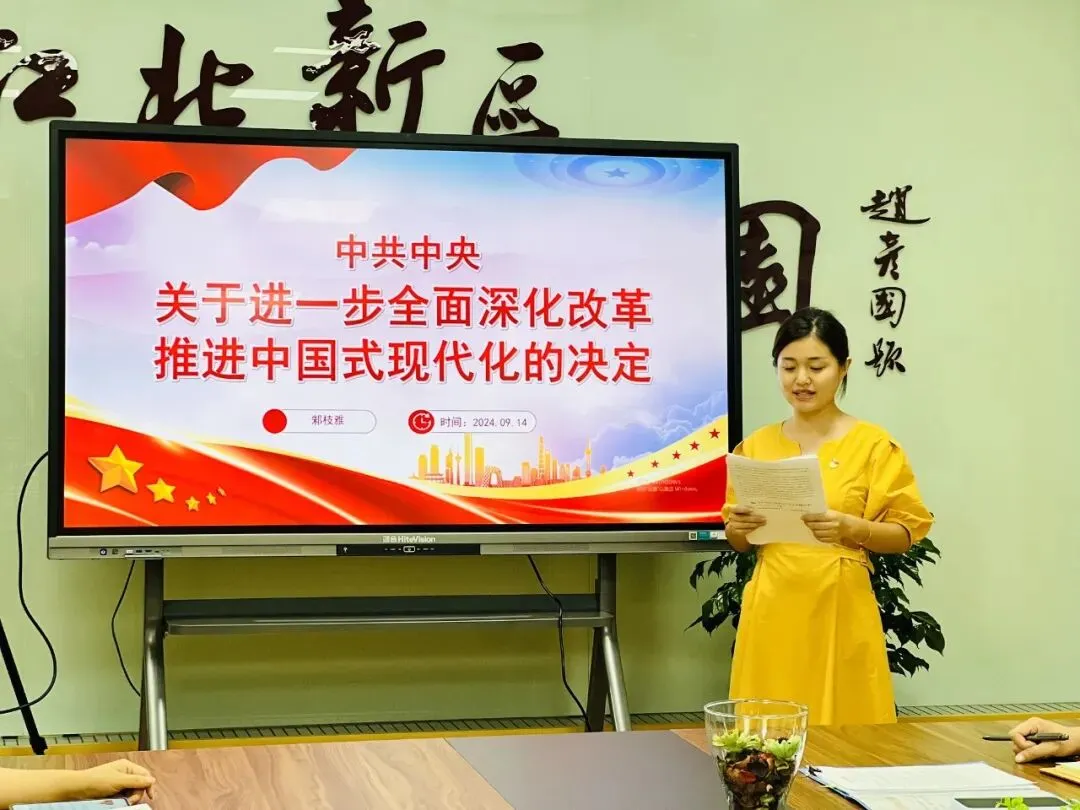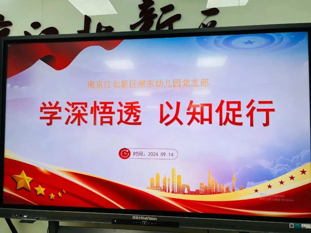 2024年9月14日,南京江北新区浦东幼儿园党支部积极响应党的号召,开展了以“学深悟透 以知促行”为主题的学习活动,深入领会中国共产党第二十届中央委员会第三次全体会议精神,为加强全体党员教师自我修养,弘扬教育家精神迈出坚实步伐。