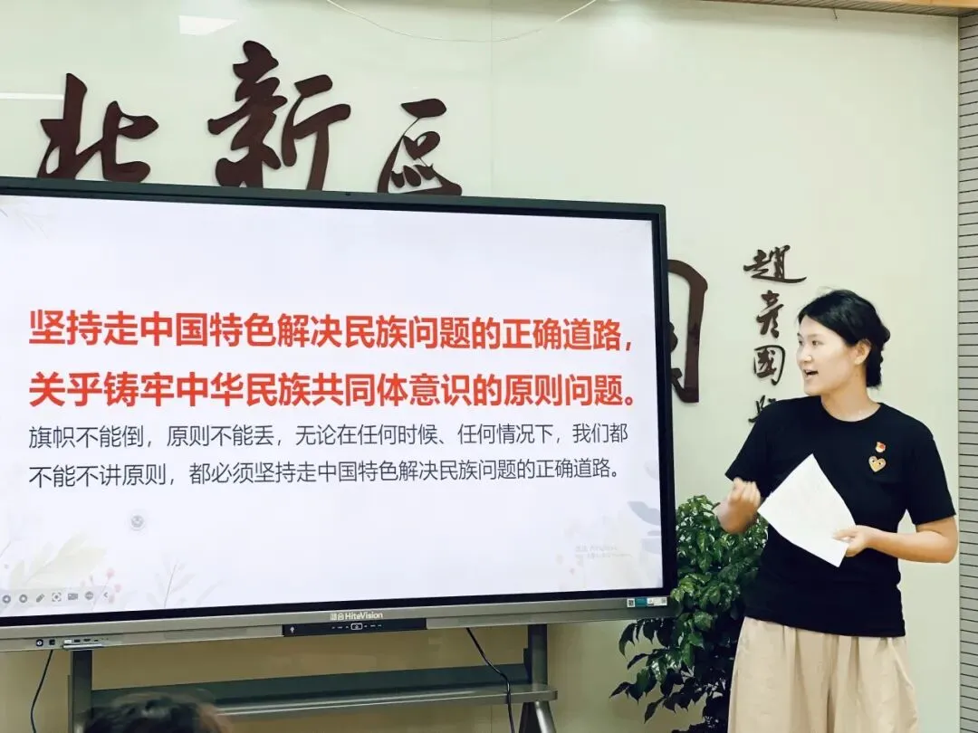 接下来,李灵莎同志对党的二十届三中全会精神中关于民族工作的新要求进行了详细解读。她提到,全会审议通过的《中共中央关于进一步全面深化改革、推进中国式现代化的决定》中明确提出,要制定民族团结进步促进法,健全铸牢中华民族共同体意识制度机制,增强中华民族凝聚力。这不仅是对民族工作的高度重视,更是对全体教育工作者提出的新要求和新挑战。