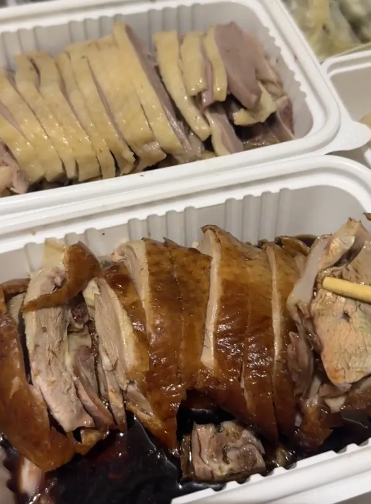 【盐水鸭】如果脆皮鸭太油腻,盐水鸭是绝对的平衡之选。肉质鲜嫩,盐香入味,特别适合配米饭。"大牌档"的外卖版本我试过多年以来都没失过手,28元一只,料好实在。