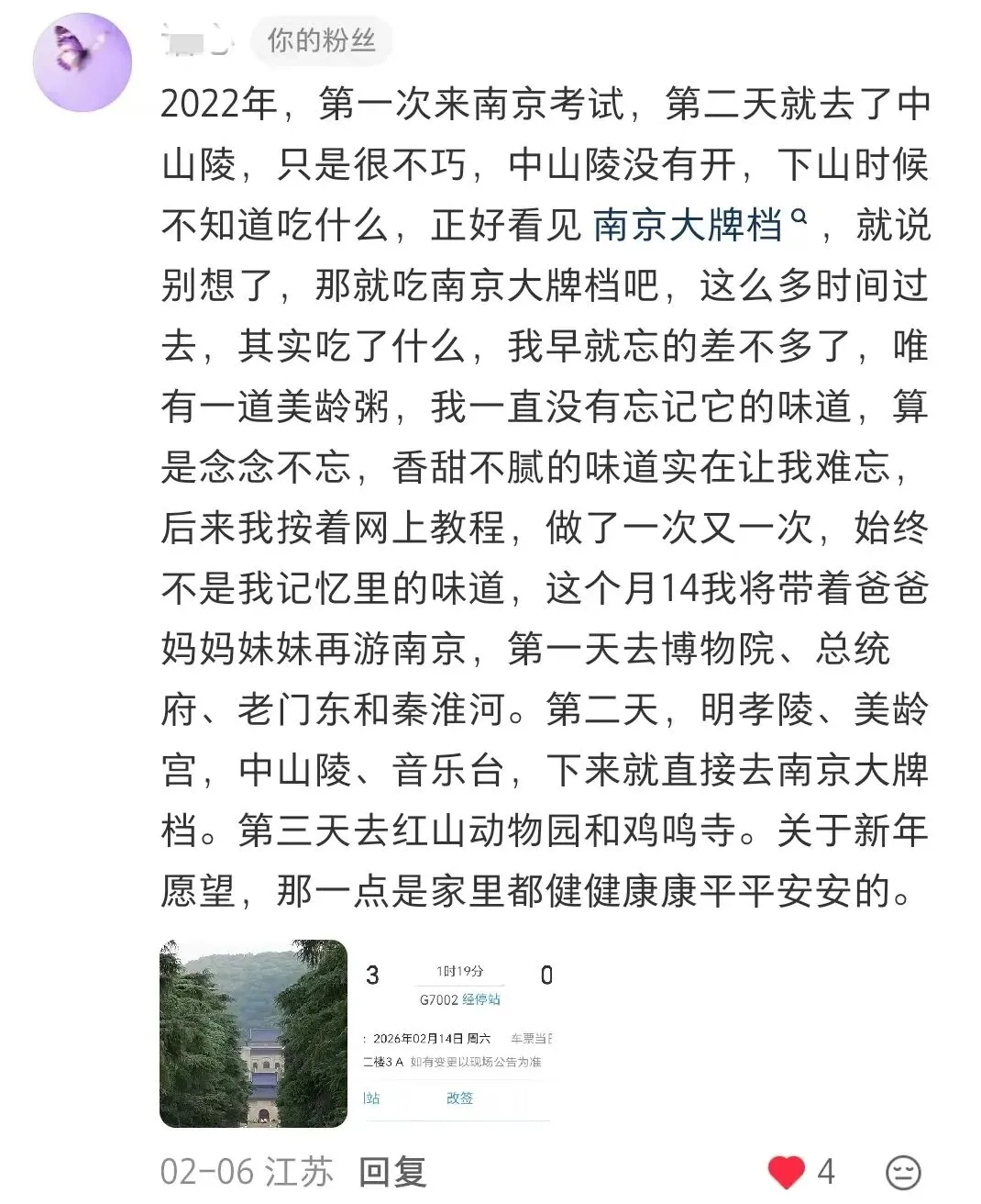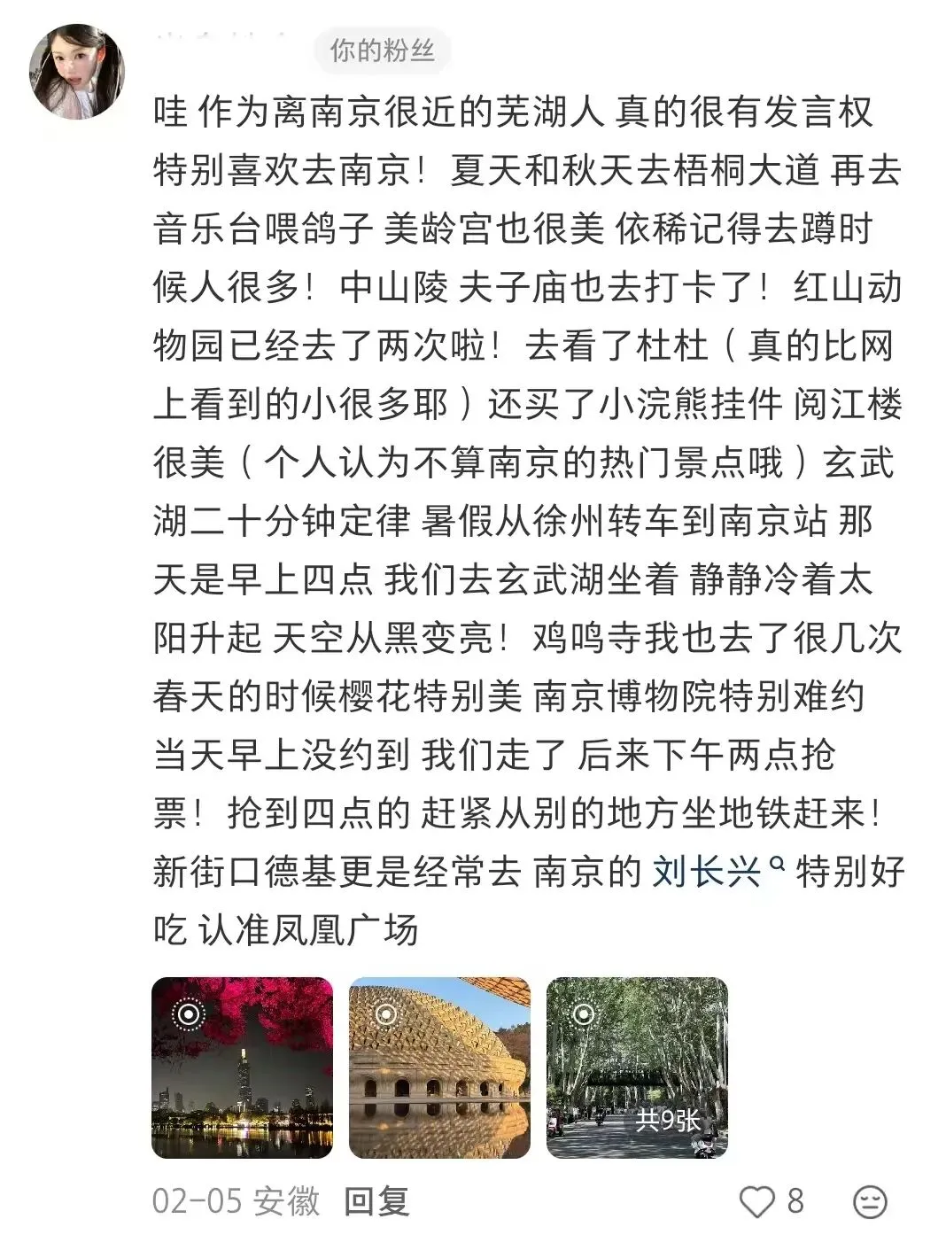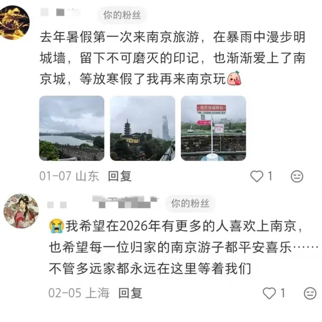 网络达人们用镜头记录着红山的“万马奔腾”、熙南里的灯影丽人、大报恩寺的瑞兽互动……评论区里,外地粉丝的向往藏不住:“今年一定要去南京!”“求攻略,现在出发还来得及吗?”——别急,精彩还在继续,我们等你来!