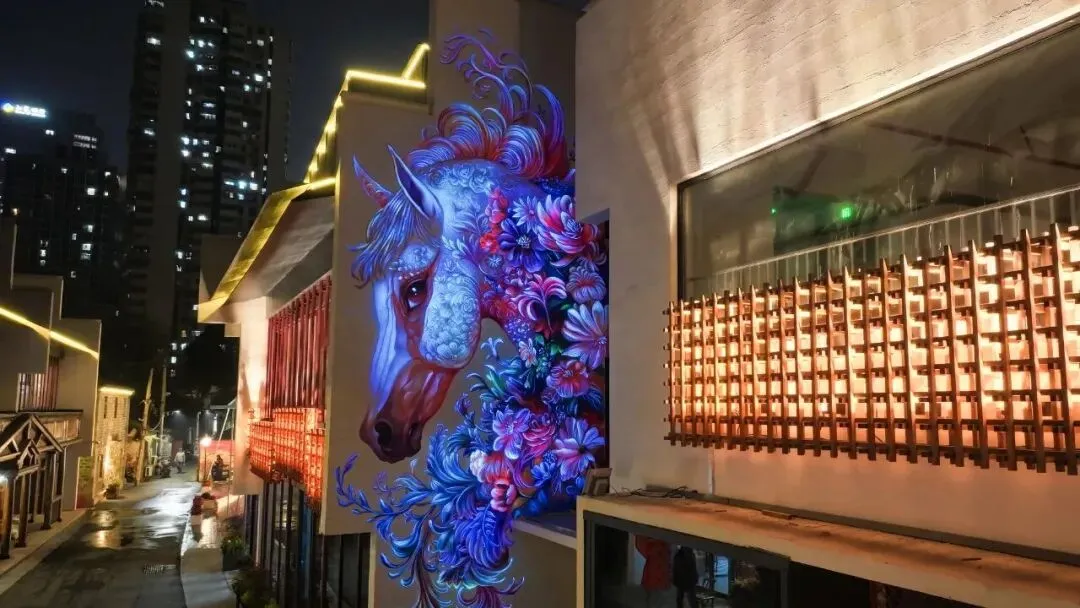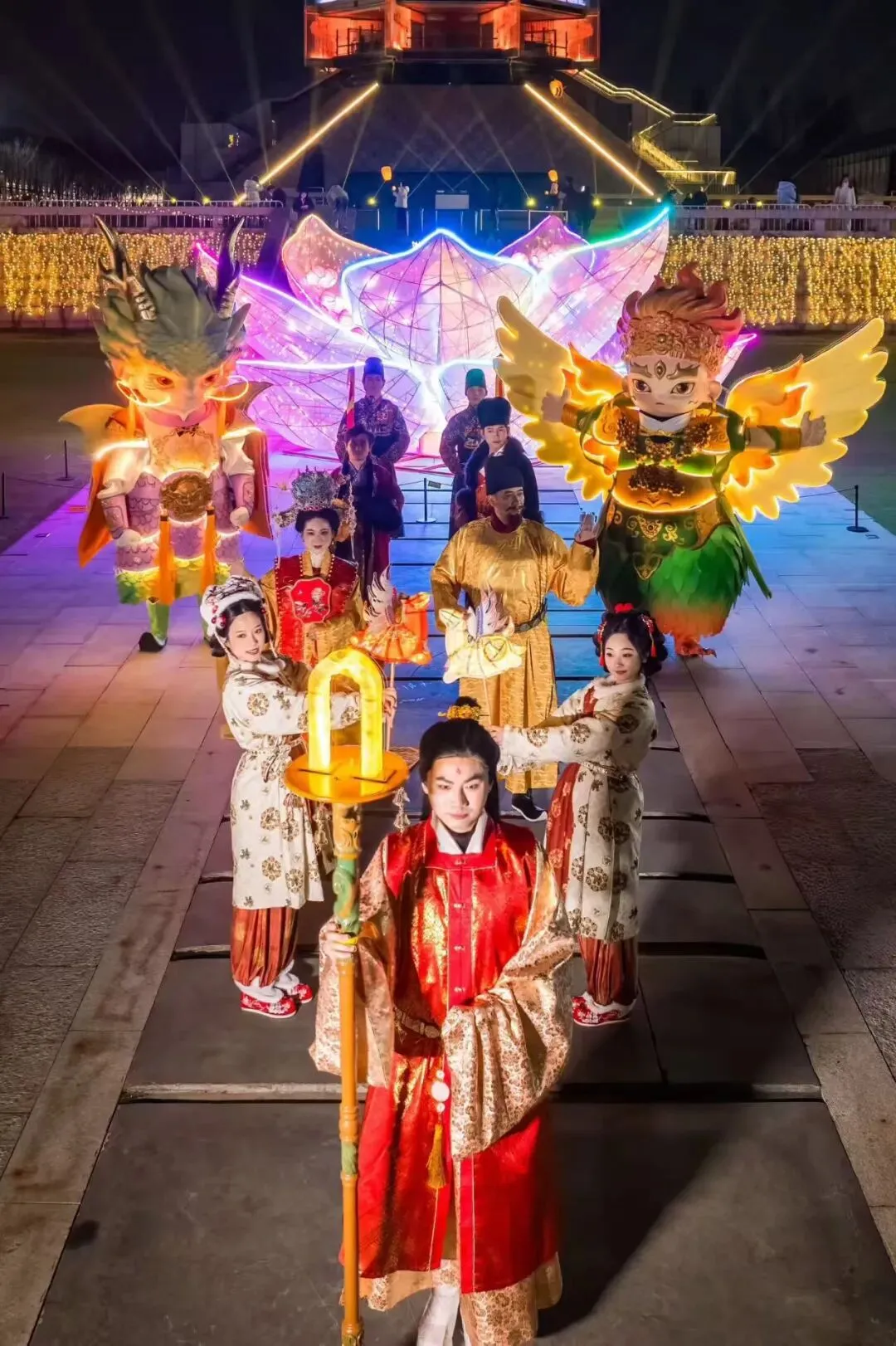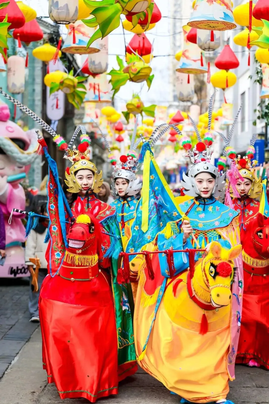大板巷牌坊口“熙南有戏”灯组是今年的主灯,汉服适配百分百;绫庄巷“琵琶少女”灯组俏皮又活泼,女生必拍;中山南路“天马行空”灯组亮起时,氛围感十足;鼎新坊灯组是马匹身披繁复传统花纹与饰品,尽显节日华贵。