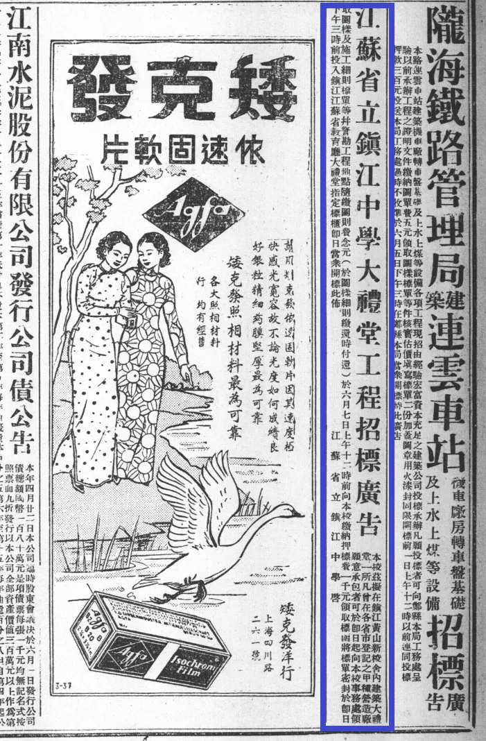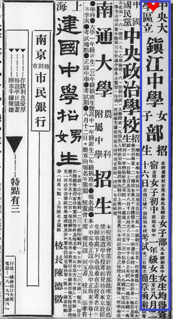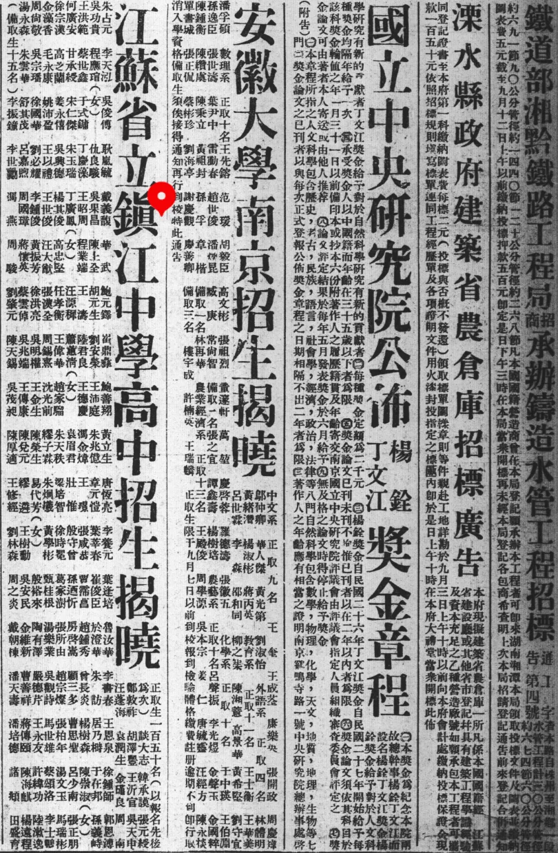 现在由民国时期的老报纸新闻,看看“新旧镇江中学”的变迁与“