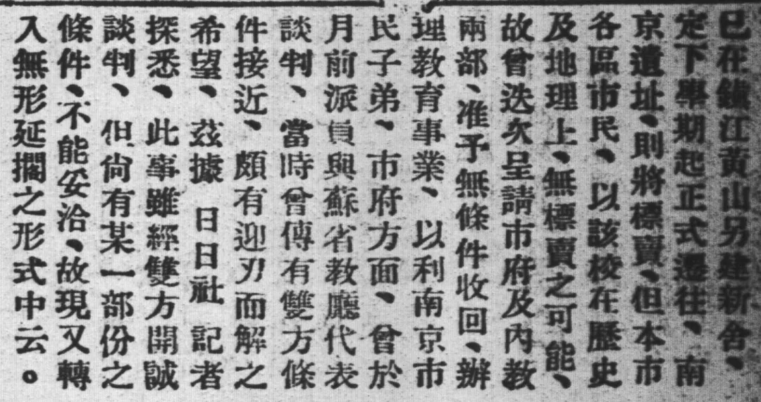 南京中学迁镇江的事情,在报纸上来回折腾了一年多,镇江黄山校址很明确就是专为南中迁镇而征地修建的,从来就没有“并校”的信息。况且这种高等级、大体量的中学校,镇江当时哪有本地学校有资格去和他“并校”呢?