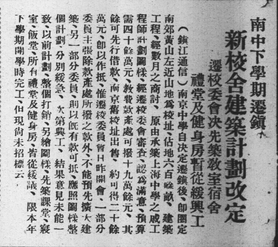 最终于1936年5月,省立南京中学迁到镇江的事情才敲定,并定于下半年开学。