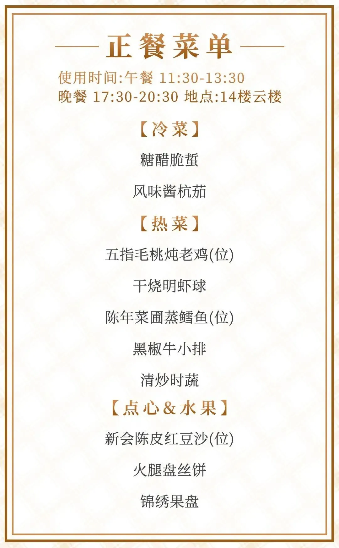 选择高级房1晚+1早1正套餐,还包含1顿丰泽楼双人正餐套餐(午餐/晚餐)。