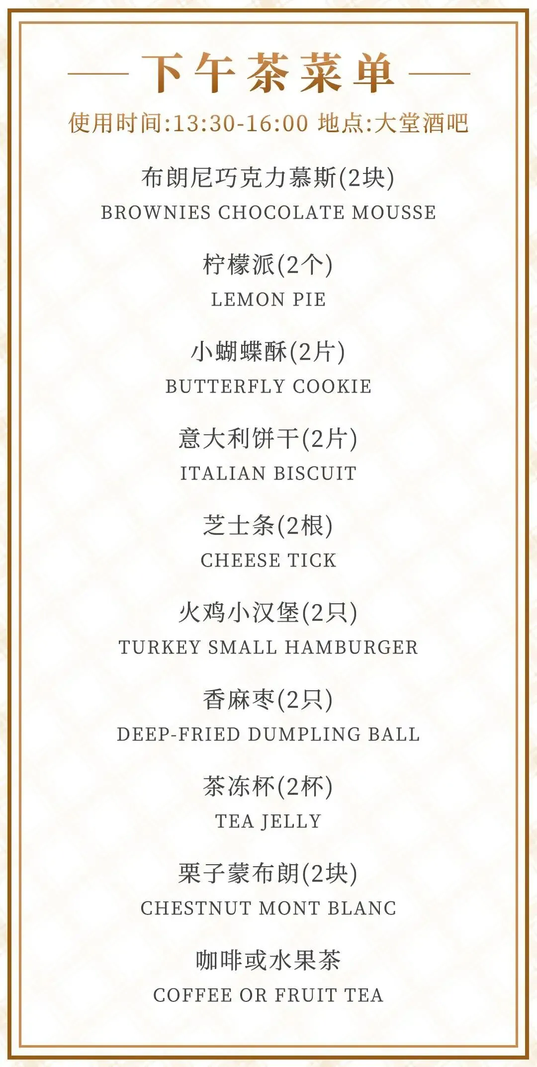 选择国际特色套房1晚+1早1正1下午茶套餐,不仅入住国际特色套房,还包含1顿云楼双人正餐套餐(午餐/晚餐),下午时分,还能在大堂酒吧美美享用1顿丰盛的下午茶。