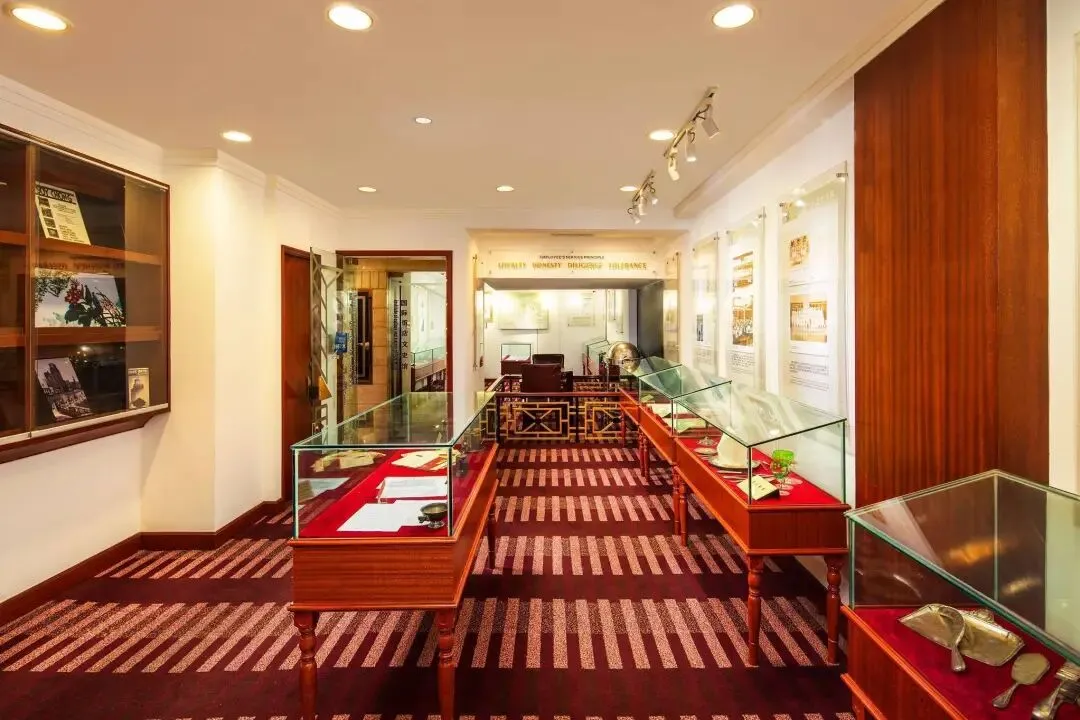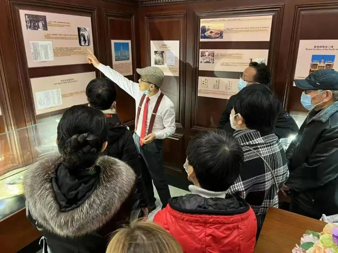 酒店内设有文史展馆,不同历史时期的票据、酒杯、菜单、银器以及名人轶事,“老法师”都会用纯正沪语向你娓娓道来,让你仿佛穿越时光,重回“老上海”。