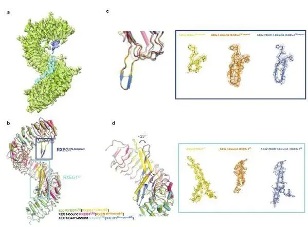 XEG1如同一把钥匙,当它插入RXEG1这把"锁"时,会诱导受体构象改变,进而促进RXEG1与共受体蛋白激酶BAK1形成异源二聚体,最终激活植物免疫信号。值得注意的是,XEG1并不直接参与RXEG1与BAK1的相互作用,而是通过别构效应间接促进二者结合。
