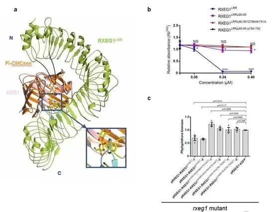 该研究的另一重大突破在于发现RXEG1具有双重功能。研究揭示,RXEG1能够结合在XEG1的酶活性口袋中,抑制其糖基水解酶活性,从而发挥"抑制子"作用。XEG1是一类在细菌、真菌和卵菌等多种病原菌中广泛存在的保守糖基水解酶,可被烟草、大豆、番茄等多种植物识别并诱导免疫反应,这使得该发现具有广泛的适用价值。