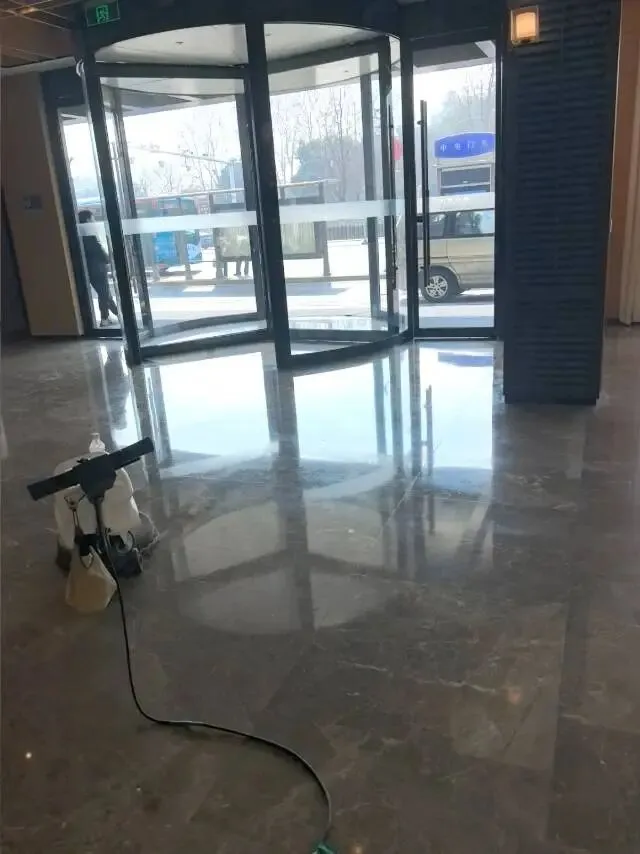 2. 结晶抛光:通过物理和化学双重作用,在石材表面形成一层坚硬、光亮的结晶层,不仅提升光泽度,更能有效防滑、防污。
