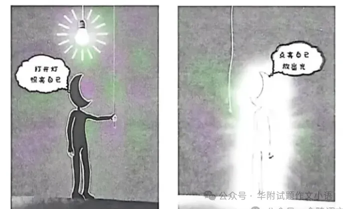 漫画中月牙脑袋小人先是伸手打开一盏太阳模样的灯,淡然道“打开灯照亮自己”;待到灯被收走,他却在原地化作光源,终于恍然:“点亮自己发出光”。这简单的两幅画面,恰是当代人精神成长的缩影——我们终其一生,都在完成从“借光”到“发光”的觉醒。