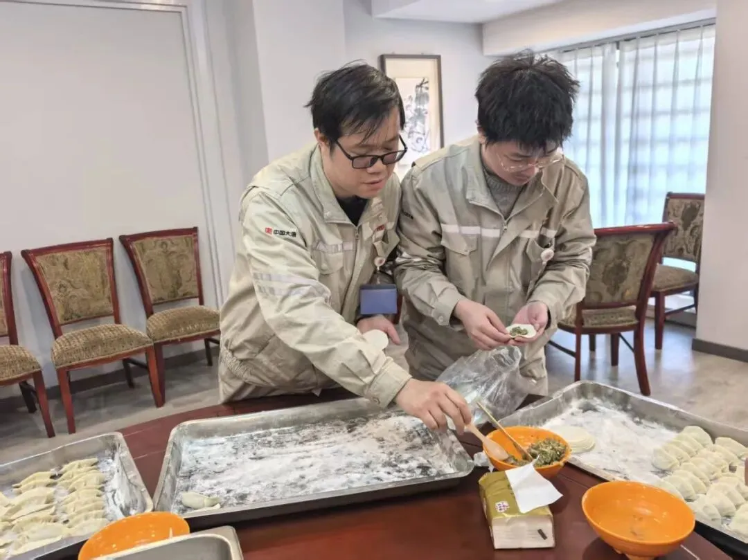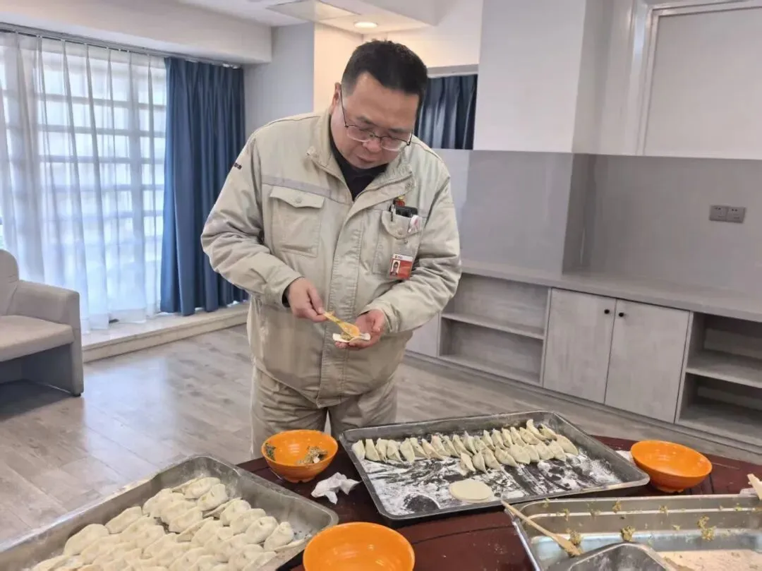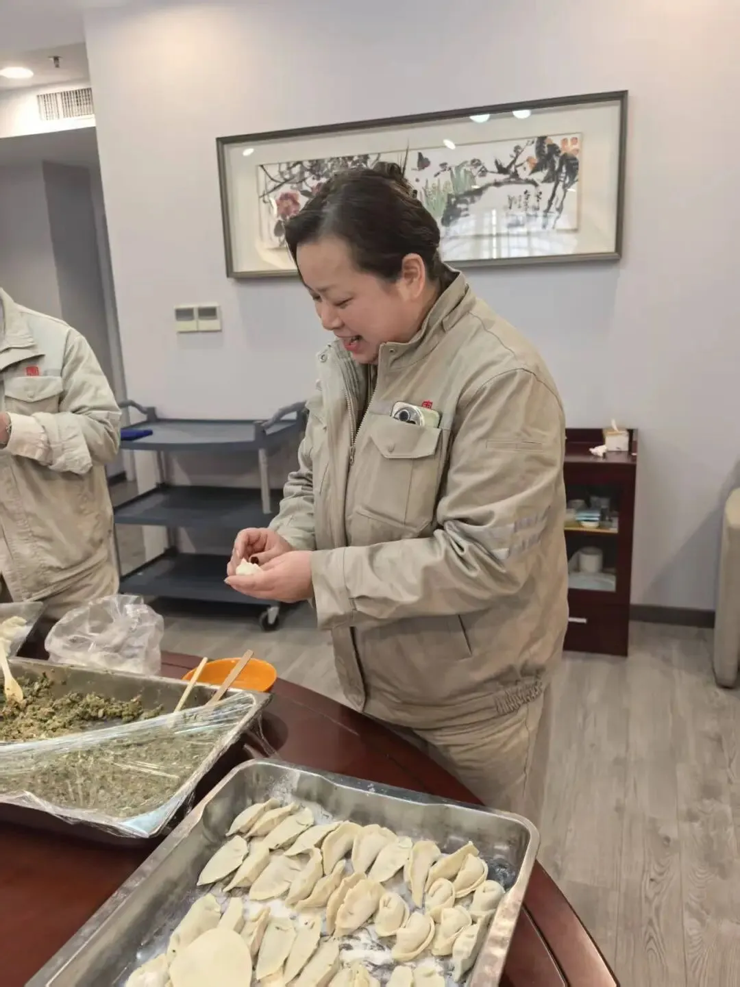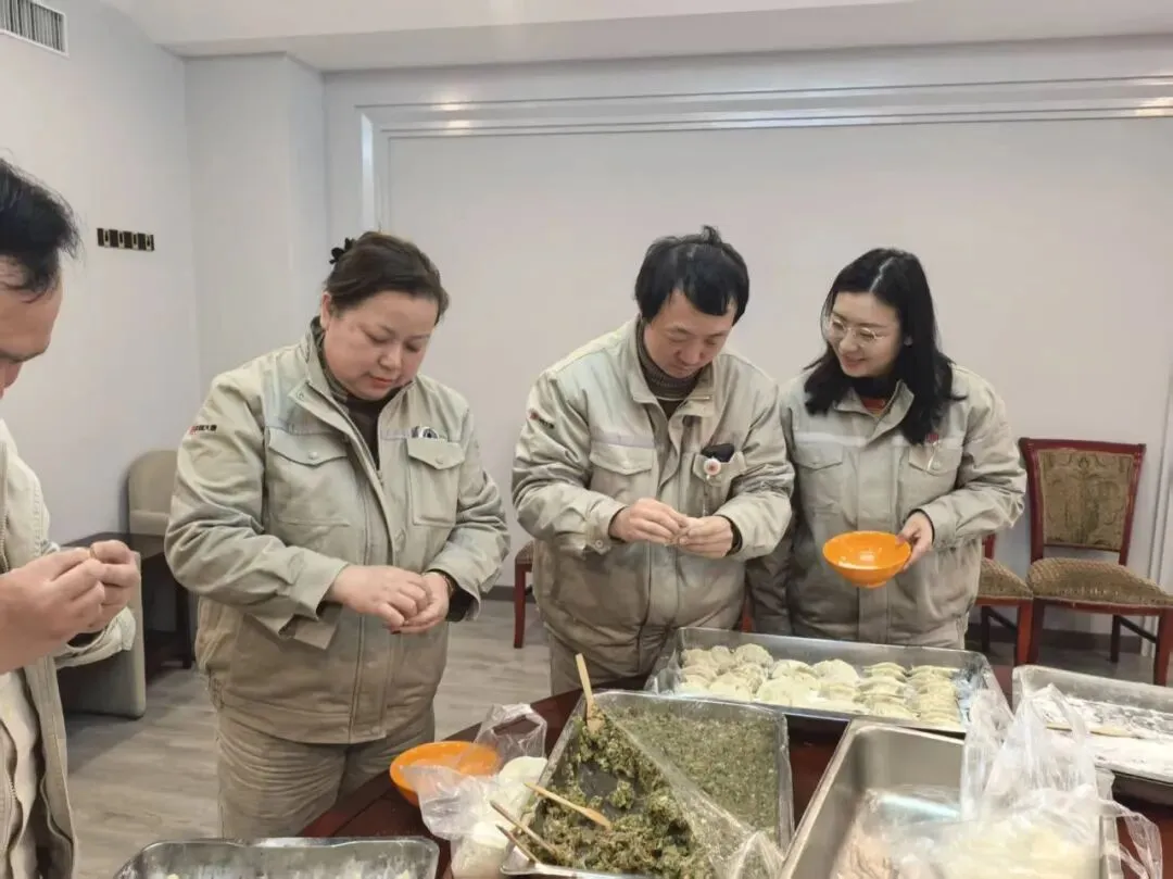 上午10时30分,活动现场已是年味十足。饺皮、馅料、面粉摆放整齐,欢声笑语此起彼伏。大家各展身手,有的手法娴熟,包出的饺子玲珑饱满;有的边学边做,乐在其中。大家一边包饺子,一边交流畅谈,聊工作、话生活、谋发展,“老马识途终领路,新驹奋蹄正当时”,思想在交流中碰撞,共识在互动中凝聚。一个个形态各异的饺子,不仅承载着传统年俗的温度,更包裹着同事之间的深厚情谊和对新年的美好期盼,传递着“和合共生、团圆美满”的传统文化精神,展现了设备安全分工会团结协作、积极向上的精神风貌。
