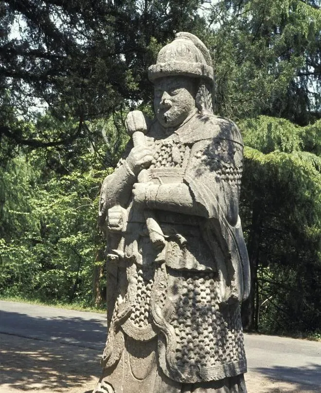 这位披甲持杖的叫石将军,胸前一片片甲叶像鱼鳞,眼窝深,嘴角往下收着,站他脚边能感到一股阴凉,爷爷说,走到这儿打个小招呼,别喧哗,人家守着路口多年了,以前我们听话,现在的小朋友更多是绕过去找角度拍照,各有各的热闹。