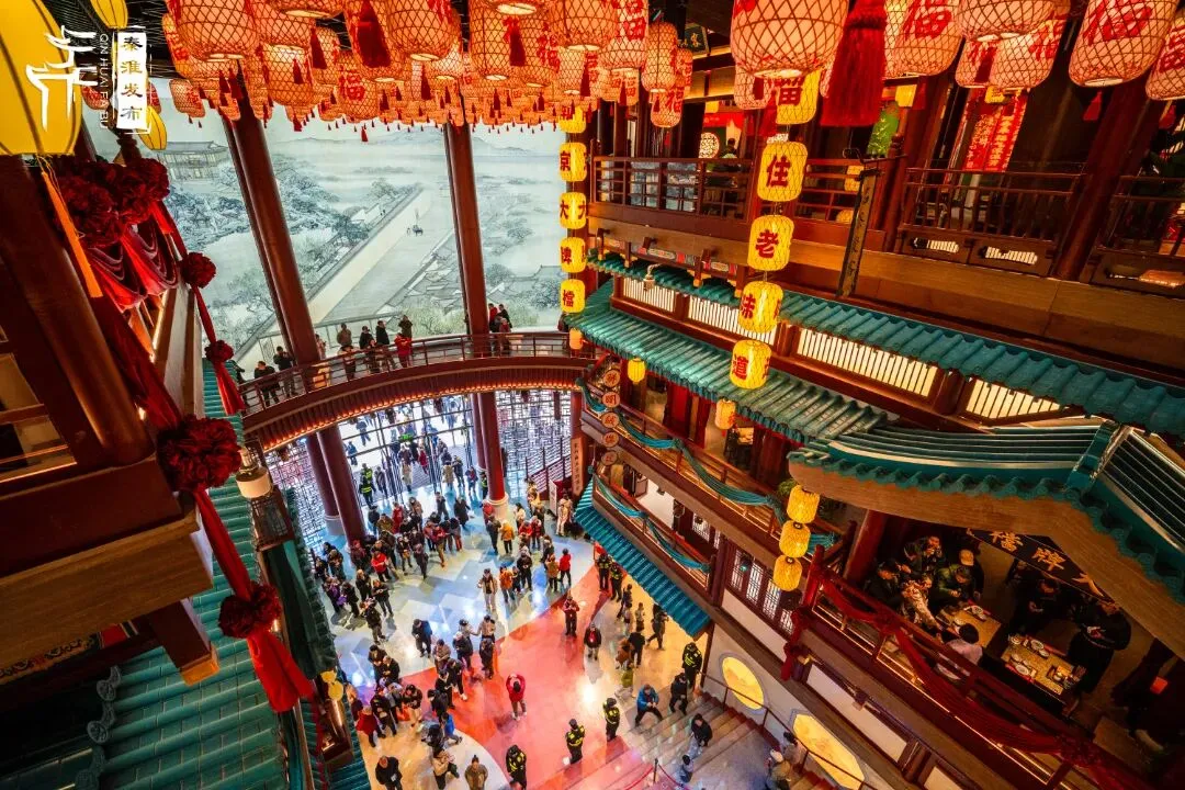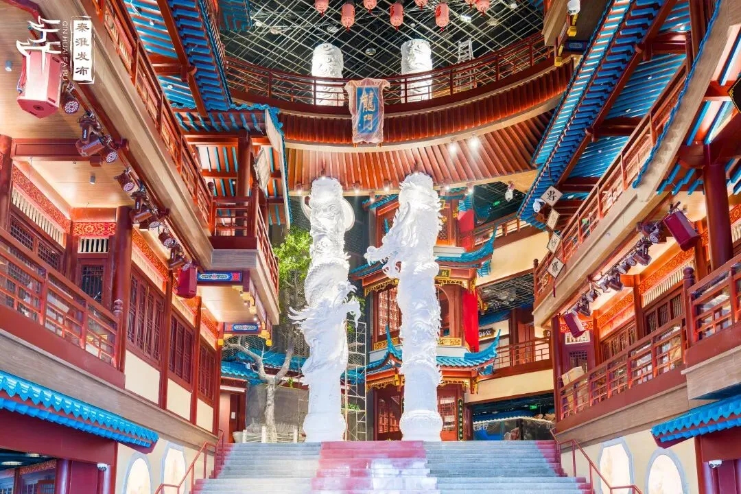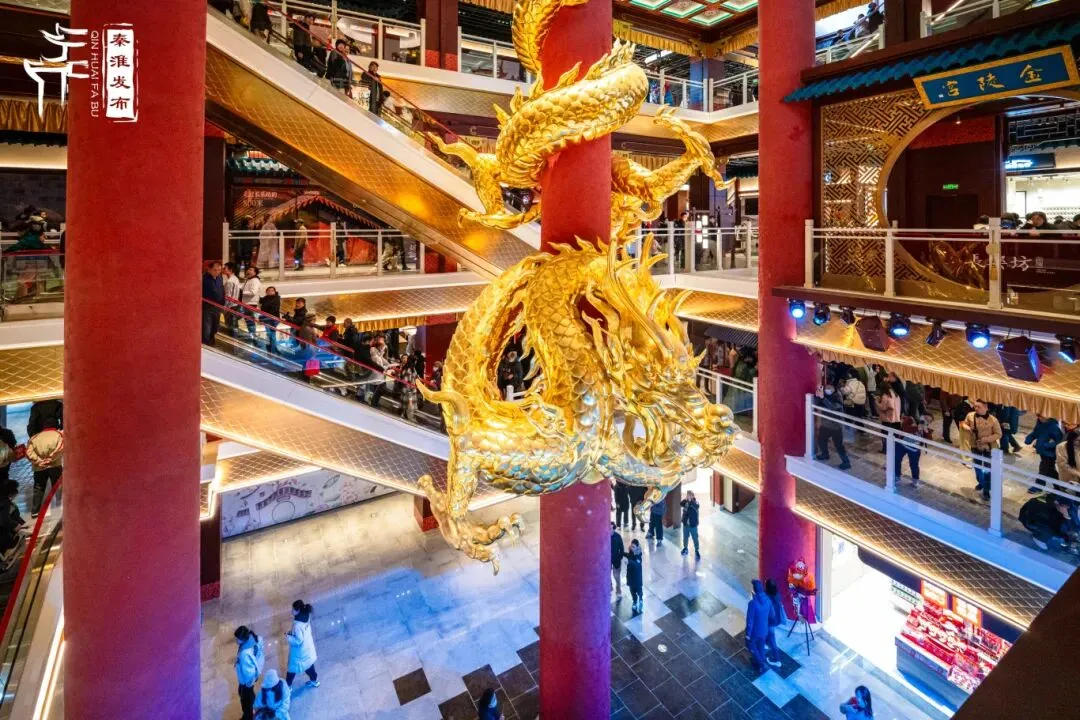 据悉,金陵长乐坊以“明代书生泛舟赴考”为故事主线,从一层渡口启程,经魁星阁祈梦、跨龙门桥鱼跃,至金陵宫演艺空间及五楼屋顶花园,完整串联赴举、殿试、金榜题名的文化动线。