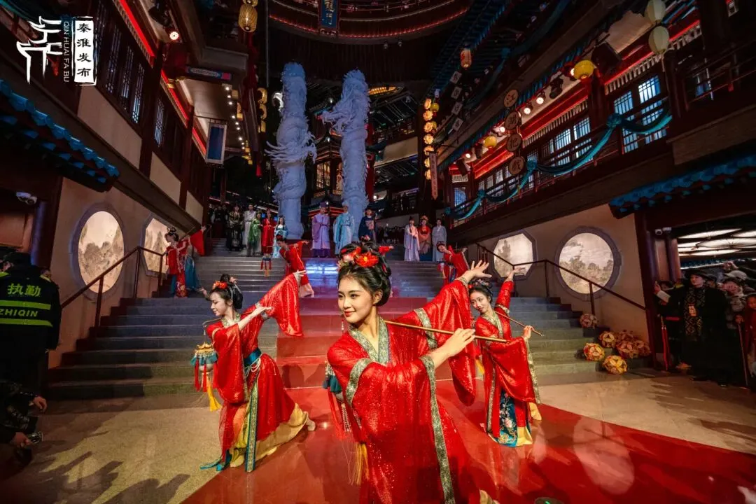 场馆内全天候、多点位的艺术表演,包括《长乐未央》大型歌舞、四大才子情景喜剧、金榜题名巡游等主题演出,同时打造常态化互动系统,让游客以“角色”身份深度参与剧情,沉浸式感受大明风华与金陵文脉。