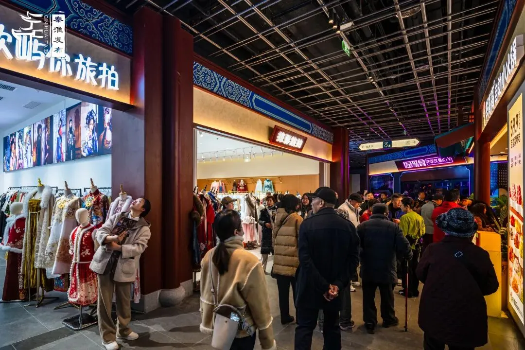 项目引入超200家特色品牌,其中超过50%为首次进入南京商场。在此可更换明制汉服打卡、在复刻魁星阁祈梦。