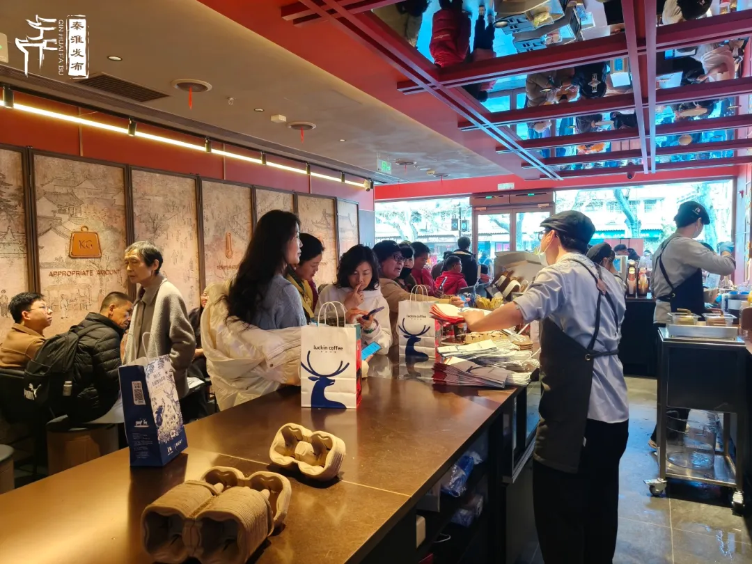 在文化叙事品牌方面,南京老字号“盛源祥”在此打造首家“金宁雅集”,以全鸭宴致敬金陵食韵;“秦淮八艳”沉浸式演绎酒馆、瑞幸咖啡秦淮金箔主题店、南京大牌档中式茶酒馆等均在产品与空间中融入鲜明在地文化符号;曾被誉为“一表难求”的南京“钟山表”历经50年风雨,也以全新形象回归,唤醒城市集体记忆。