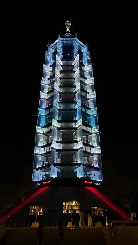 • 历史传奇:明代永乐年间建造的琉璃宝塔,曾以“通体琉璃、夜间发光”闻名世界,被誉为“中古世界七大奇观”之一。如今重建的琉璃塔高93.157米,采用轻质钢架与超白玻璃复刻,外壁镶嵌11万片明代琉璃残片,阳光折射时泛起七彩光芒,夜晚则化身“光之灯塔”,通过智能LED与投影技术再现梦幻佛光。