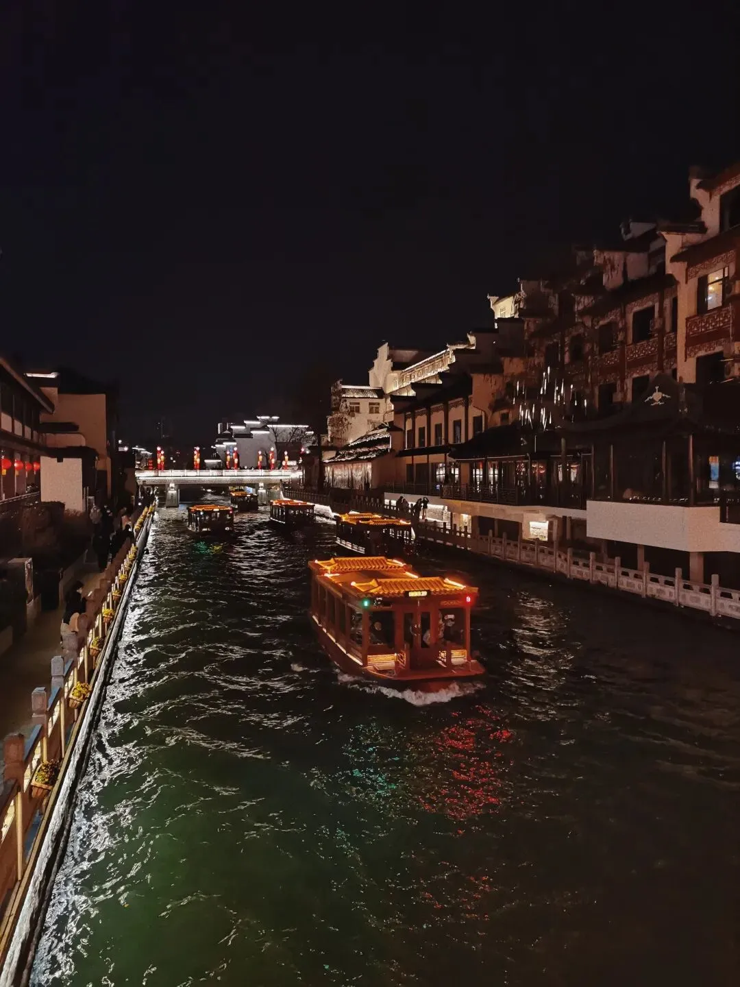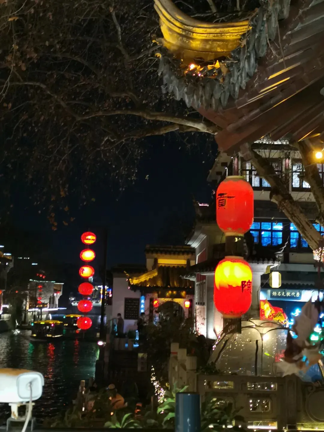 我们排了半小时队伍,买到了秦淮河夜游船票。站在船上,忍不住遐想,千年之前这里又是怎样的灯火楼台?而此刻,只有这温存的风,拂过脸颊。