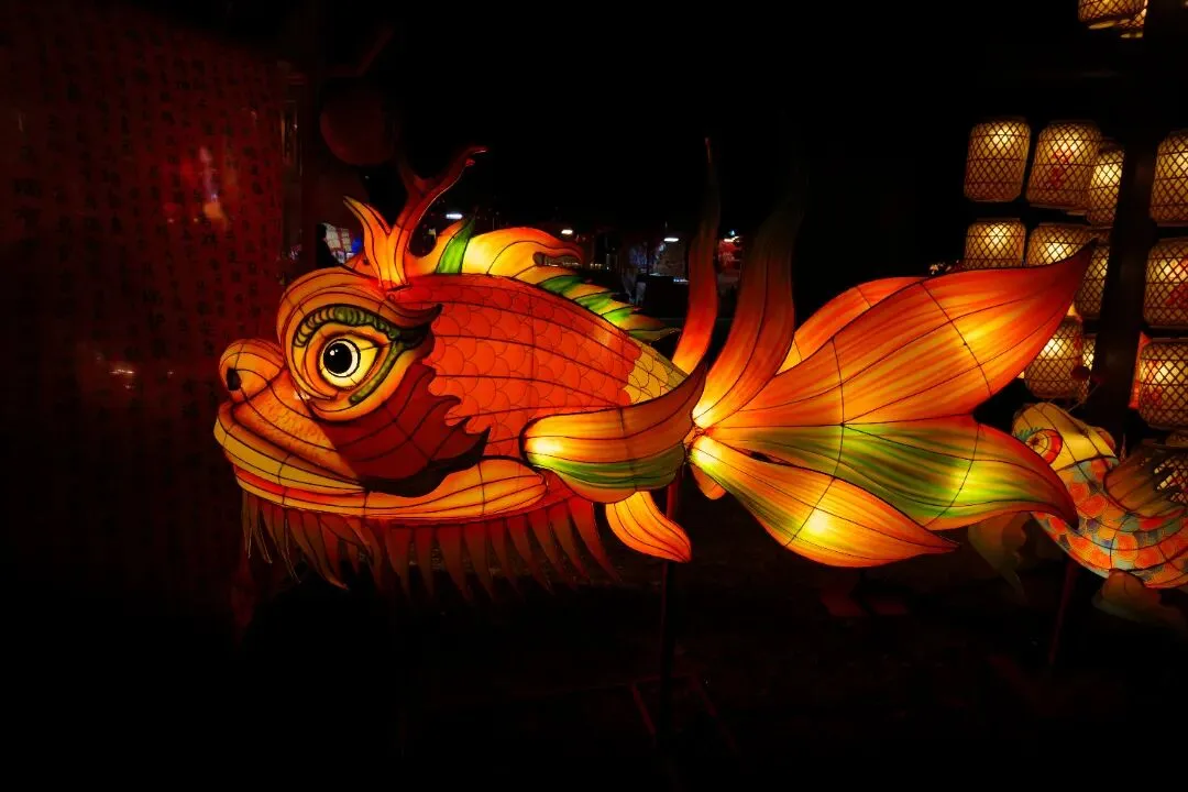在阳山碑材的梦幻之夜,加入蜿蜒的鱼灯巡游队伍,暖光流动如星河漫地。