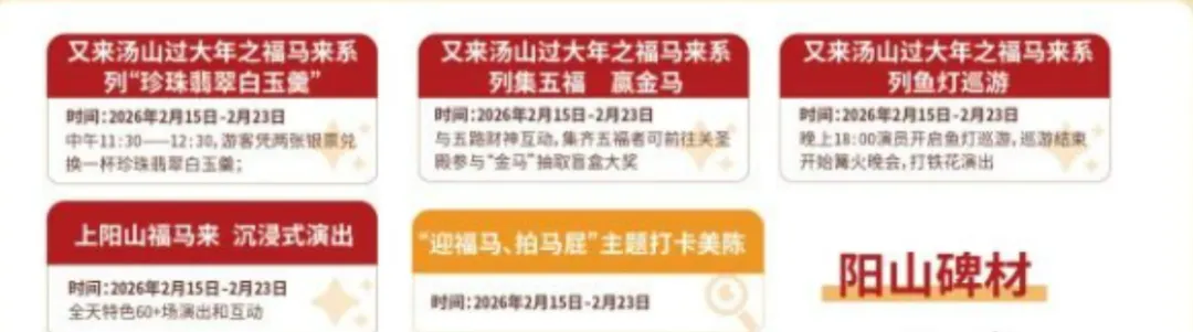 活动内容:舞狮表演、功夫熊猫巡游、梨园风华·折子戏、鱼灯巡游、婚礼巡游、打铁花