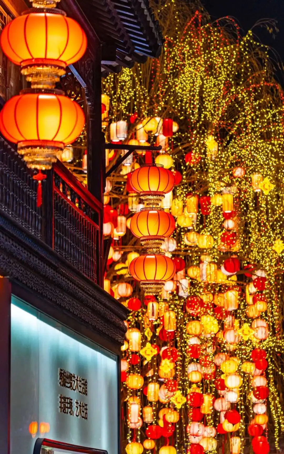 去年的正月,我在安徽歙县瞻淇村看到了《青玉案 元夕》这首诗词中“一夜鱼龙舞”的具象化展现,而今年在南京的秦淮灯会,我又看到了同出于这首诗词中的“东风夜放花千树”究竟是何种模样。十里秦淮,灯火如昼,一河星光,半城繁华。在灯影阑珊的夜色里,在满河流动的光影中,一步一景皆是火树银花的温柔相拥。