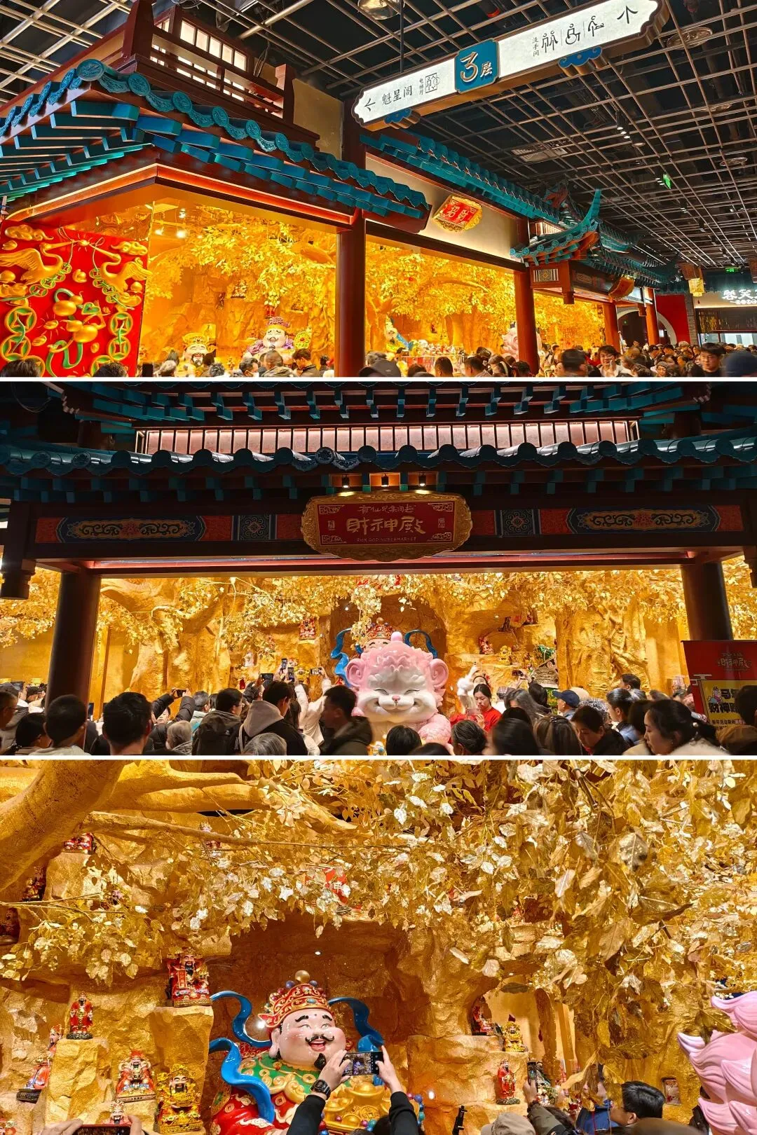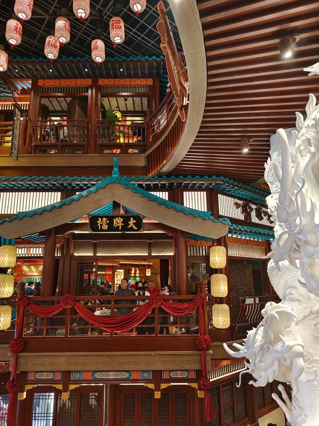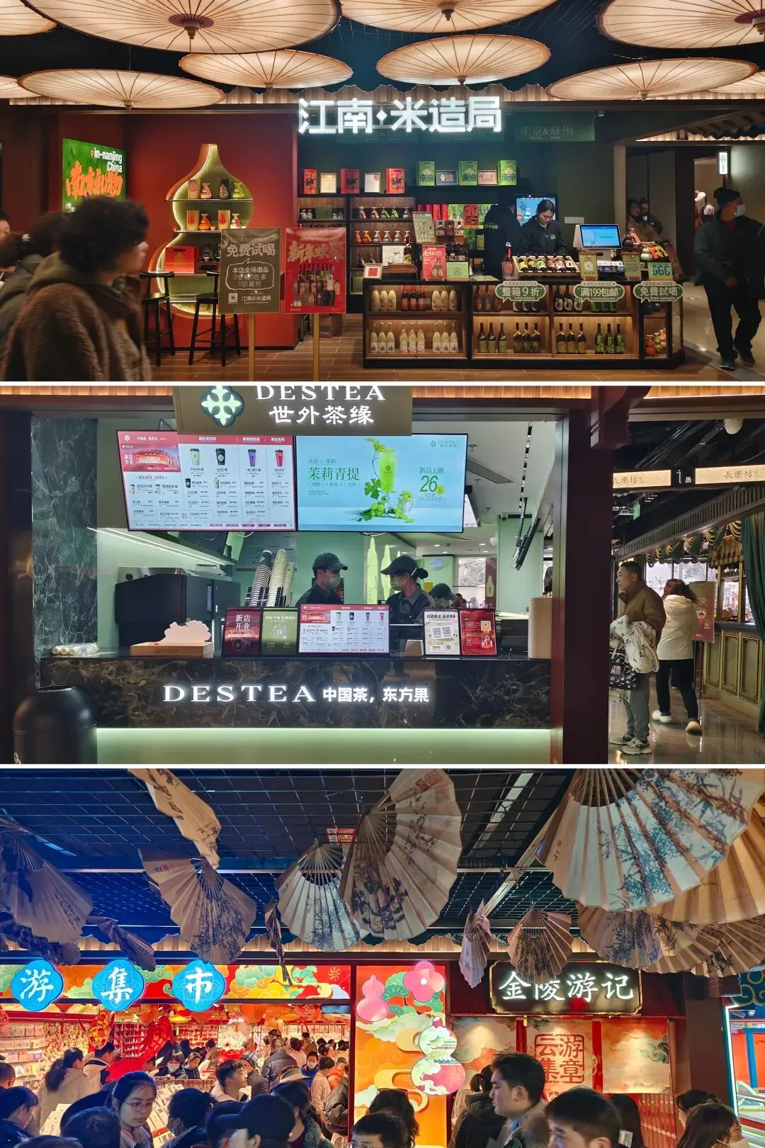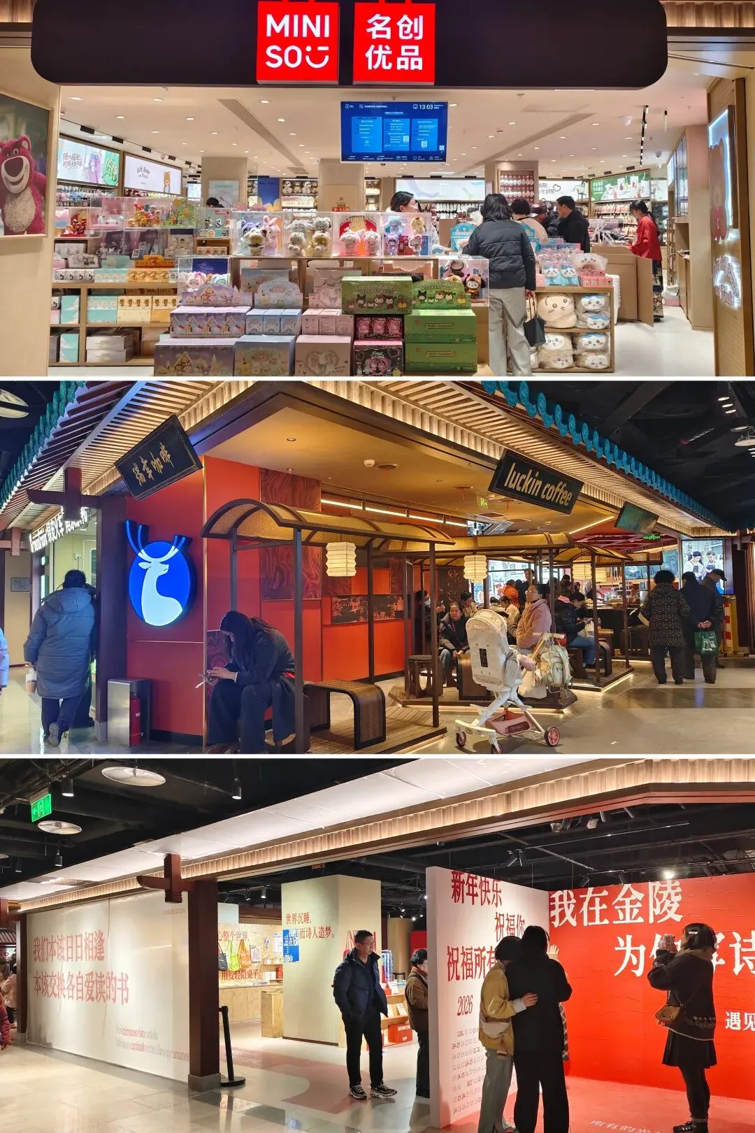 金陵长乐坊,位于南京秦淮区长乐路132号,毗邻夫子庙、老门东,2月19日(正月初三)试营业。地铁武定门站往西步行可达。以大明文化为核心,以“明代书生赴考”为故事线,打造沉浸式文化空间,引入超200家特色品牌。以“科举文化”为脉络,以“明代书生泛舟赴考”为主线,融入“金陵四十八景”元素,将明代状元黄观从“赴考”到“登科”的故事线与空间场景深度绑定,串联起五层空间的文化叙事。一层:以“渡口”造型为起点,复刻古代考生乘船赴考的场景,结合中庭的通体贴金蟠龙柱与铝制仿斗拱殿宇,营造出“金陵宫”的恢弘气势。二层至四层:通过“魁星阁祈梦”“龙门桥鱼跃”等场景,隐喻科举之路的“祈福-登科”过程。其中,龙门桥雕琢二龙戏珠,桥下灵动鲤鱼暗喻“鱼跃龙门”。五层:屋顶花园“一望千年”以“金榜题名”为终点,南望老门东、中华门城墙,北瞰现代都市天际,形成古今对话的绝佳观景台。图文拍摄整理为小夕图集