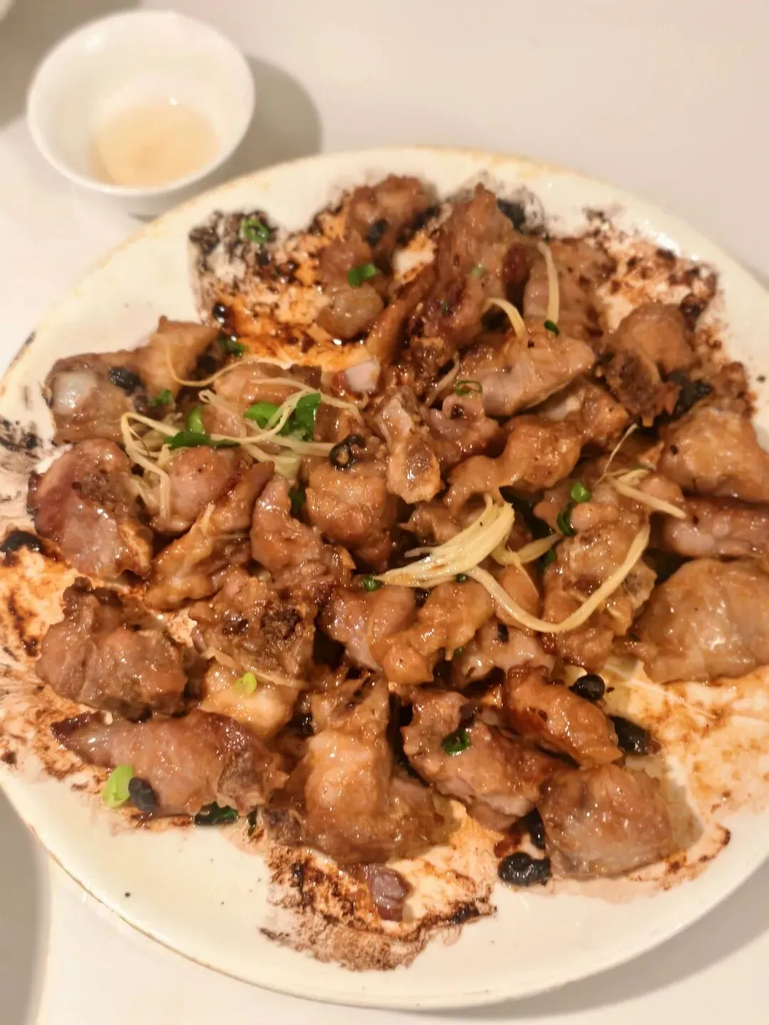 干蒸排骨跟鸡肉的口感有点相似,也是嫩弹爽脆,最好吃的部分在贴锅处,起了美拉德反应,棕黄色像捏过酱油般,吃起来微微焦香。