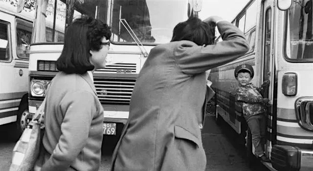 这张最逗,孩子踩在车踏板上冲镜头咧嘴,旁边大人抬手挡光,那个年代相机不多,抓到一张就是缘分,底片洗出来发黄也开心,妈妈说别动别动,眼睛看我,这一喊我更想笑,结果笑成月牙儿,留到今天还被拿出来调侃。