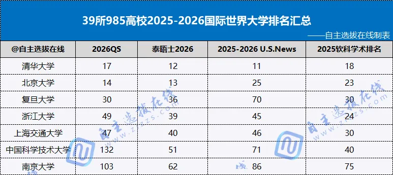 在最新的国际排名中,南京大学持续位居世界前列:在2026年QS世界大学排名中位列全球第103位;在2026年泰晤士高等教育世界大学排名中位居全球第62位;在2026年US News世界大学排名中位列全球第86位。
