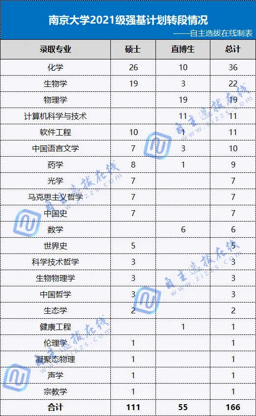 2021级共计166人成功转段,与第一届强基生(115人)相比,增加51人!其中111人进入硕士阶段,55人直博!