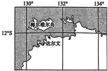梅尔维尔岛位于澳大利亚北部(距达尔文市约41.5km)。受气压带、风带影响,达尔文市及周边为干湿季分明的热带草原气候,而梅尔维尔岛为热带雨林气候。研究发现,该岛东南部海湾沿岸洋流流向存在季节性变化并形成环流。如图为梅尔维尔岛位置图,据此完成下面小题。