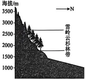22.若P地水源较充足,请根据垂直带谱的分布规律推测与雪岭云杉林带下部相邻的天然植被带最可能是()