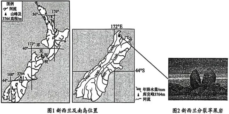(1)说明新西兰南岛年降水的空间差异,并分析原因。(6分)