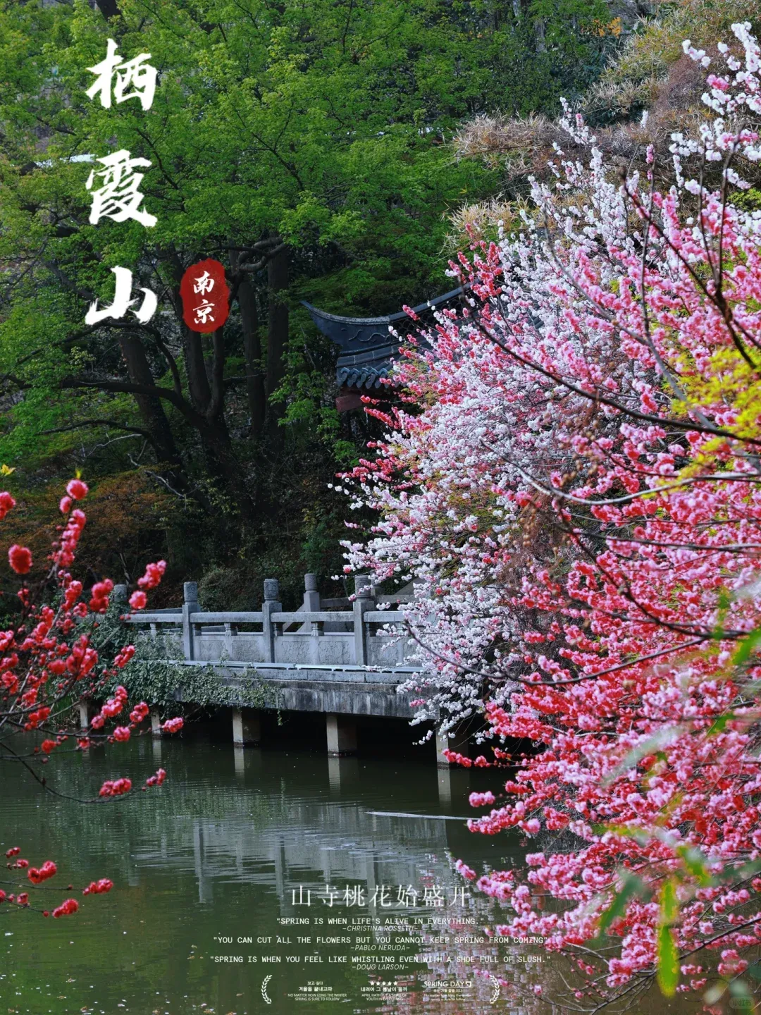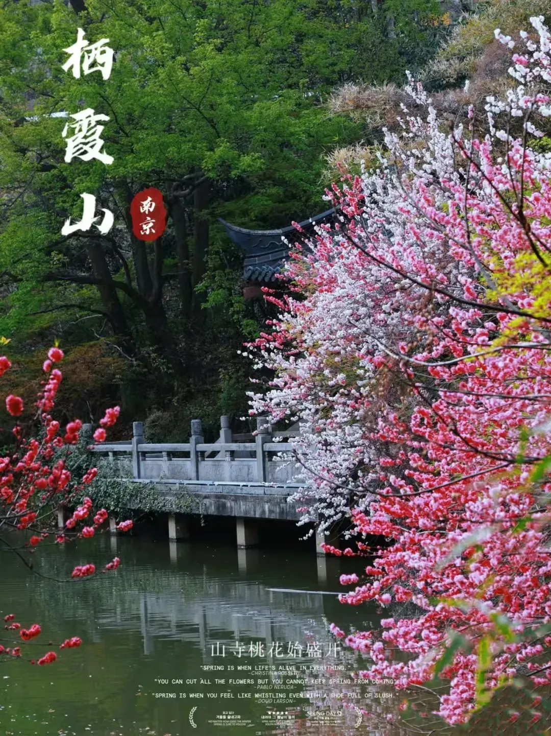 所以,我们在这里,铺满了春色浪漫~桃花开了满眼粉粉一树,住着春天。春天很短,要及时行乐。所以我们要赶紧,赶紧地,去春天里,去桃花深处,遛遛自己。来和我交换一张你手机里栖霞山的春天~