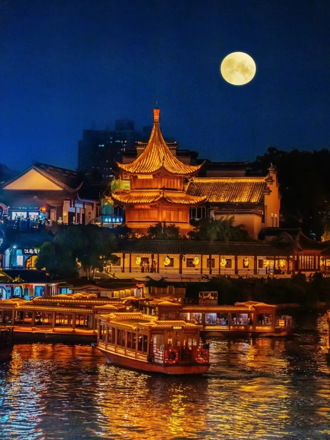 最美金陵不夜天,十里秦淮,桨声竹影,泛舟河上,吹一吹秦淮河的晚风,感受一下独属于南京的浪漫。