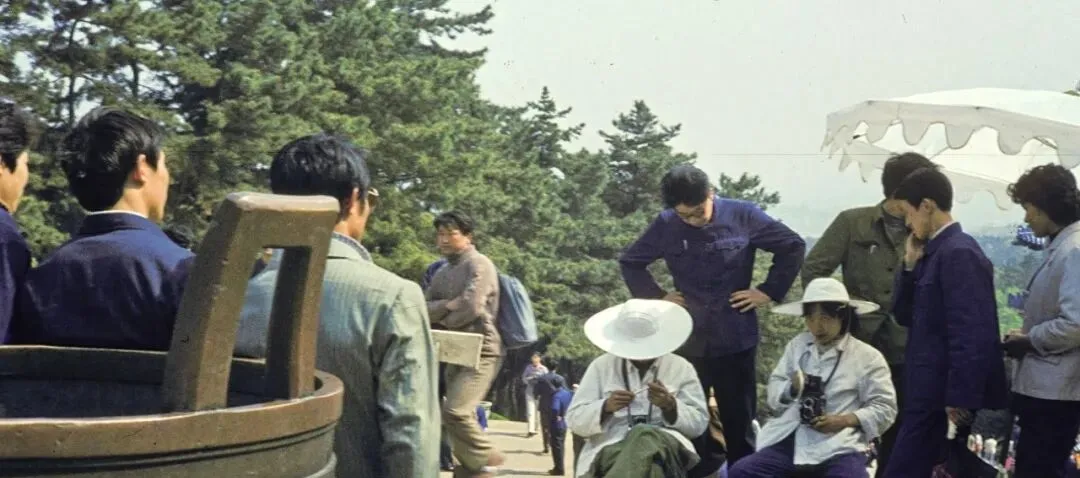 照片里的地方是中山陵台阶,朋友们围坐抽根歇脚烟,肩上帆布包鼓鼓囊囊,帽檐压得低低的,卖酸梅汤的小贩提壶过去,铝勺一舀,酸香冲着鼻子来,走到这里不喘两口,腿可真打颤。