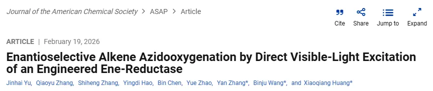 近日,南京大学黄小强/张艳教授团队联合厦门大学王斌举教授在国际著名学术期刊JACS发表题为“Enantioselective Alkene Azidooxygenation by Direct Visible-Light Excitation of an Engineered Ene-Reductase”的研究论文。其中,南京大学余进海特聘副研究员、研究生张士恒和厦门大学张巧玉博士共同为论文第一作者,南京大学黄小强特聘研究员/张艳教授和厦门大学王斌举教授共同为文章通讯作者。