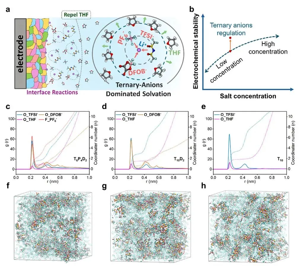 在此,复旦大学夏永姚,南京航空航天大学郑明波、刘振辉等人提出了一种三元阴离子(PF₆⁻、TFSI⁻、DFOB⁻)驱动的、以代表性弱溶剂四氢呋喃(THF)为主成分的溶剂化最小化策略。