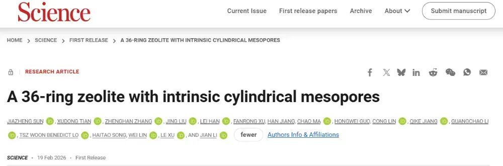 报道了一种全新高硅沸石NJU120-6。该材料首次实现由36元环构筑的本征圆柱形