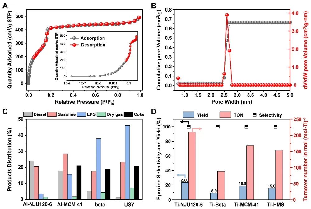 。值得强调的是,与此前报道的ITQ-37、ITQ-43等拉长型孔道不同,NJU120-6的孔道截面更接近圆形,意味着大分子扩散更加顺畅,也更有利于实际催化过程中的传质效率
