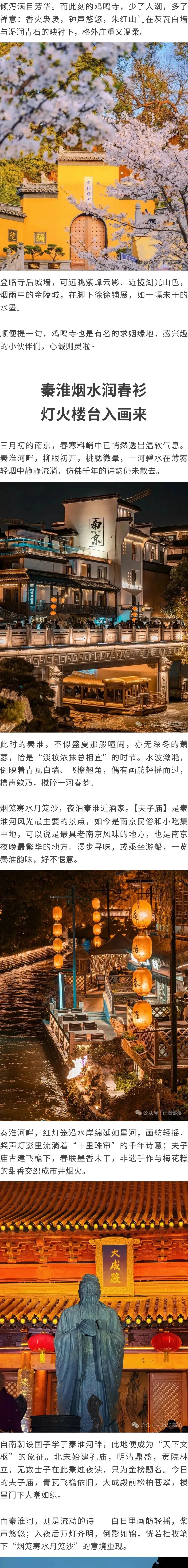 早晨青岛出发,中午到达南京 先安排入住酒店(根据实际情况安排,也可能先去景区),然后小伙伴可以自由行,也可以跟随大巴去江南最大的皇家湖泊园林“玄武湖”,玄武湖紧挨“南朝四百八十寺”之首鸡鸣寺,鸡鸣寺也为国内著名的姻缘许愿地(鸡鸣寺门票10元,想去的小伙伴自理了)之后大巴车将大家送到夫子庙秦淮河景区,秦淮河静静流过、十里烟云,大家可以在这里感受“烟笼寒水月笼沙”金陵城。