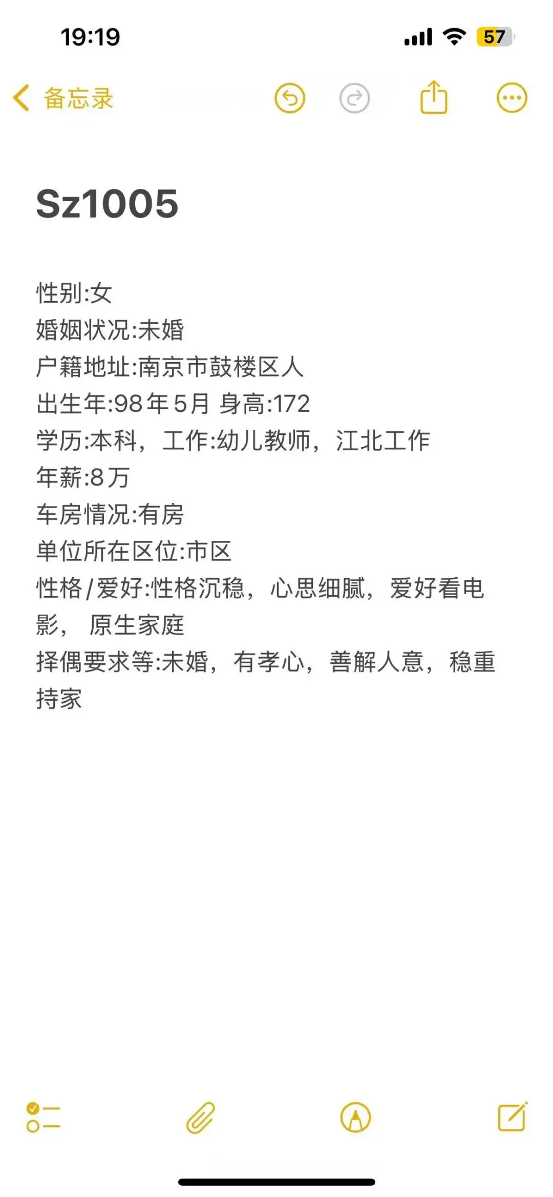 南京相亲丨95年,女,身高163,南京理工大学毕业,央企工作,年薪10万左右,南京有房有车