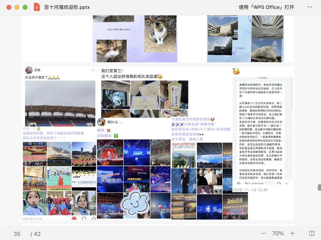 补充宣讲材料。对宣讲PPT进行优化补充,在原有内容基础上融入大学日常学习、社团生活、专业实践等真实分享,让宣讲内容更鲜活、更接地气,拉近与学弟学妹的距离。