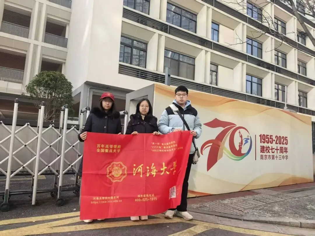 源起十三,汇聚河海。2026年1月30日,我们河海大学的学子重返南京市第十三中学,开展了“情系母校,筑梦未来”主题宣讲活动。本次活动的一大特色是覆盖了红山新城与本部两个校区。活动围绕“感念师恩”“进班宣讲”“学习经验分享”三个主题有序展开:我们带着精心准备的伴手礼拜访恩师,重温高中岁月的温暖与教诲;随后走进班级,以学长学姐的身份分享河海大学的学科特色与校园生活;最后,我们结合自身备考经历,为学弟学妹们梳理学习方法、解答备考困惑。整个过程中,我们不仅传递了河海精神,也搭建起两校学子间的沟通桥梁,用实际行动延续了母校与高校之间的薪火相传。